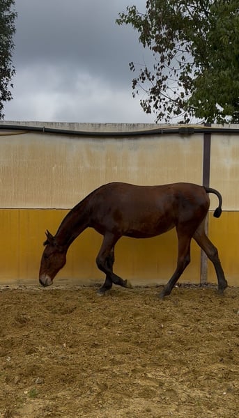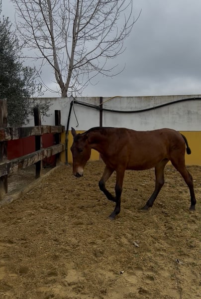 En venta extraordinaria potra PRE, nacida en marzo de 2025 (10 meses en la actualidad). De capa castaña y con una alzada de 152 cm. Criada en libertad. Carácter excepcional, es cariñosa y tranquila. Genética muy buena: - Su padre “Jabato” es un Valdeolivas de 1,76m hijo de Duiker con extraordinaria fuerza y movimientos. - Su madre “Listilla” es una yegua 100% Guardiola de 1,70m; es una yegua con muchísima raza y un físico y belleza difícil de encontrar. Va a ser una potra de gran alzada, con mucho hueso y belleza. Para más información, contacte sin compromiso.