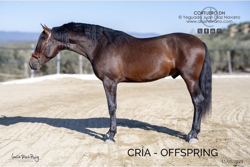 OPORTUNIDAD PARA GANADEROS Se vende yegua de cría con hijos de muy buena calidad (ver fotos) y buenos orígenes. Se vende por exceso de plantilla en la yeguada. Da crías de capa negra, negra ceniza, castaña, baya y torda. Preñada: preguntar información Alzada: 1’61m a la cruz Apta como reproductora de PRE UELN: 724002012505991 Doma: a la mano. Morfología antigua, con un carácter como pocos. Líneas: Yeguada Militar, Vizconde de la Montesina, Hierro del Bocao, Fdez. Daza y Fdez. de Córdoba, Urquijo, D. Benito Zoido, Salvatierra, Martínez Boloix y Bohorquez. diaznavarro.es/ibera-dn WhatsApp: +34 629773610
