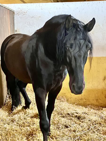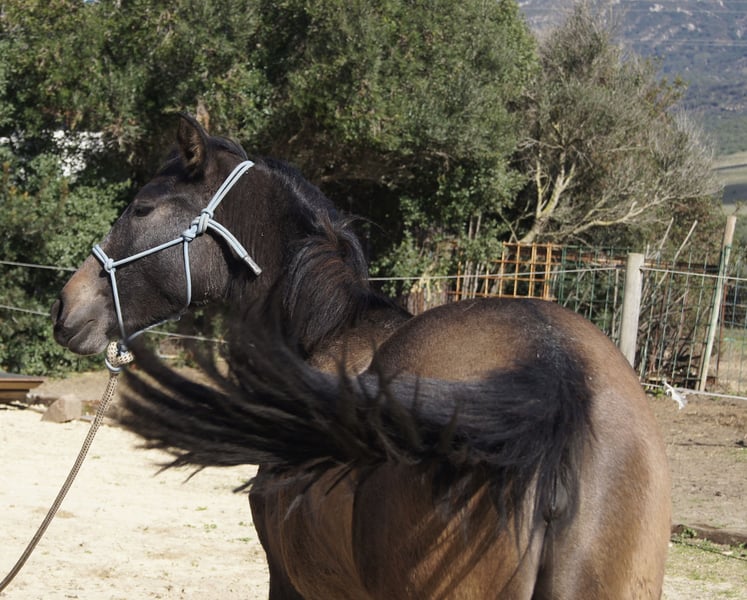 Preis ist bis April ‘26 reduziert, damit ich dem Pferd einen weiteren Umzug ersparen kann. Im Mai zieht sie auf meine Finca und der Preis steigt wieder an. Zum Verkauf steht diese wunderschöne PRE Stute, die auf den riesigen Weiden der Yeguada Yedra in der Gegend von Malaga aufgewachsen ist. Die ist absolut gesund und ohne Makel. Wir haben sie selber mit dem Anhänger von dem Gestüt geholt und das ging ohne Probleme. Sie lernt sehr schnell, sodass sie sich schon sehr gut händeln lässt. Sie kennt Aufhalftern, Hufe geben, ist lieb beim Hufe bearbeiten. Sie folgt ihrem Menschen und lässt sich gut führen. Ihr Exterieur ist makellos. Gerade im Moment ist sie hinten sehr hoch gewachsen, was aber ihre Erscheinung in der Bewegung nicht beeinträchtigt. Sie ist im Rang sehr weit unten, ordnet sich schnell unter und ist einfach nur lieb. Kein Rempeln oder schlechtes Benehmen dem Menschen gegenüber. Da sie recht groß wird, habe ich mich entschieden sie zu verkaufen. Sie hat viel Escalera Blut und ist für die Zucht auch sehr interessant. Auf den letzten Bildern seht ihr sie mit ihrer Mutter auf den riesigen Weiden. Die letzten Bilder zeigen ebenfalls den Vater.