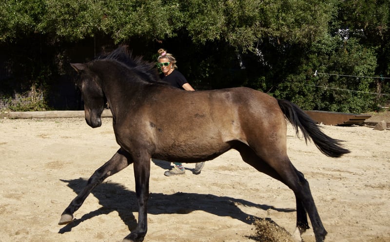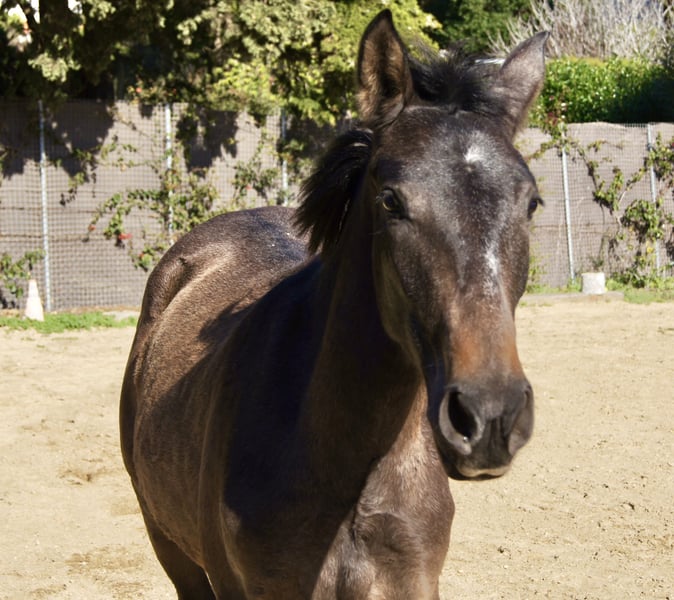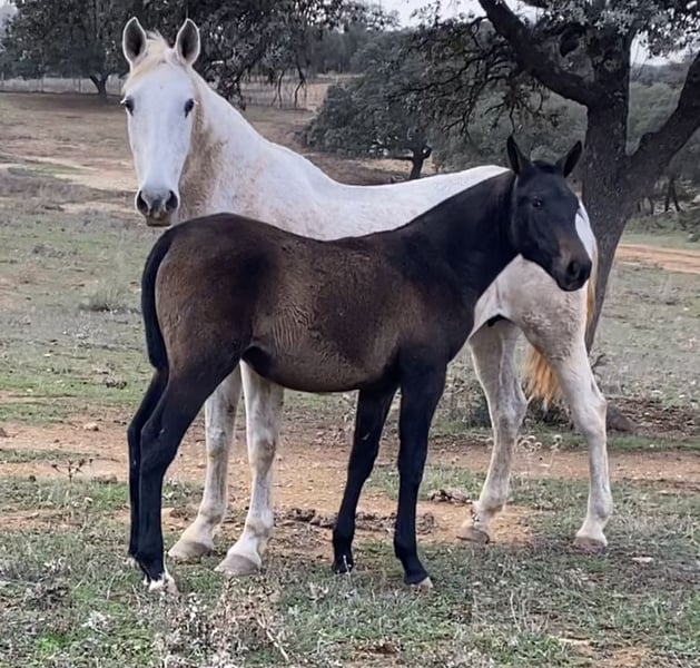 Te koop staat dit prachtige PRE merrie, die op de uitgestrekte weiden van de Yeguada Yedra in de omgeving van Málaga is opgegroeid. Ze is volledig gezond en zonder gebreken. We hebben haar zelf met de trailer van de fokkerij gehaald, wat probleemloos ging. Ze leert zeer snel, waardoor ze al heel goed te hanteren is. Ze is bekend met halsters, het geven van hoeven, en is lief tijdens het hoefverzorging. Ze volgt haar mens en laat zich goed leiden. Haar exterieur is onberispelijk. Op dit moment is ze achteraan erg lang, maar dat beïnvloedt haar uitstraling tijdens het bewegen niet. Ze staat nog vrij onderaan in rang, past zich snel aan en is gewoon ontzettend lief. Geen duwgedrag of slecht gedrag tegenover mensen. Omdat ze nog vrij groot wordt, heb ik besloten haar te verkopen. Ze heeft veel Escalera-bloed en is ook zeer interessant voor de fokkerij. Op de laatste foto's zie je haar met haar moeder op de grote weiden. De laatste foto's tonen ook haar vader.