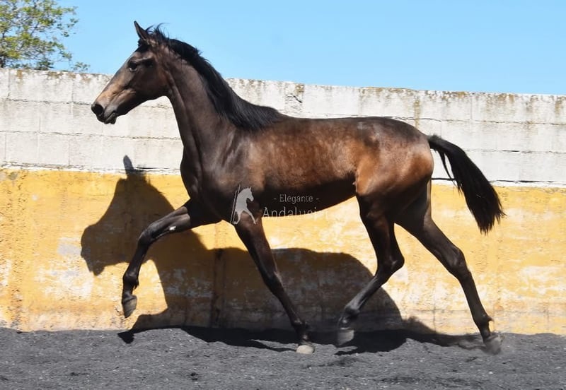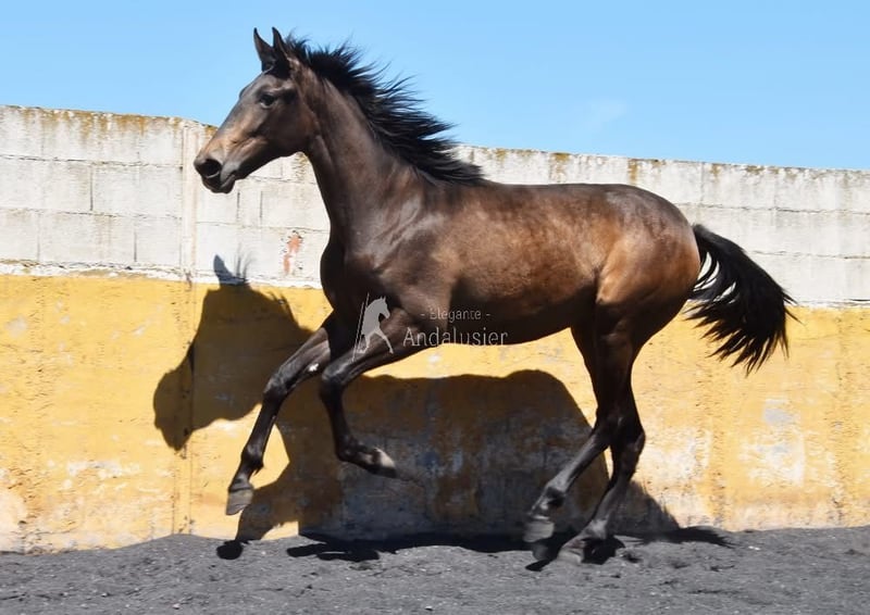 uroczy charakter, ciekawski, surowy, stoi na zewnątrz z matką i innymi klaczami i źrebiętami, wyjątkowe umaszczenie, PRE dun z papierami, dobry ruch i rodowód, rodowód: Alfredo Gala, Pablo Perez Jimenez, Castillo Villafranca, Andres Holgado Dianes, Uropa Mariscal de Torre i Ururopa Remache XIII są kwalifikowane. www.elegante-andalusier.com