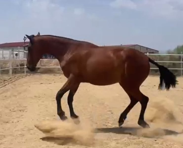 ZU VERKAUFEN: BRAUNE TURNERSTUTE, Stockmaß 1,53 m, SPEKTAKULÄRE BEWEGUNGEN, Edelmut-Rasse-Funktionalität, hochwertige Stute, Tochter von Weltmeistern, Stute mit Zukunft als große Zuchtstute. Ruf jetzt an, wenn du eine Qualitätsstute suchst.