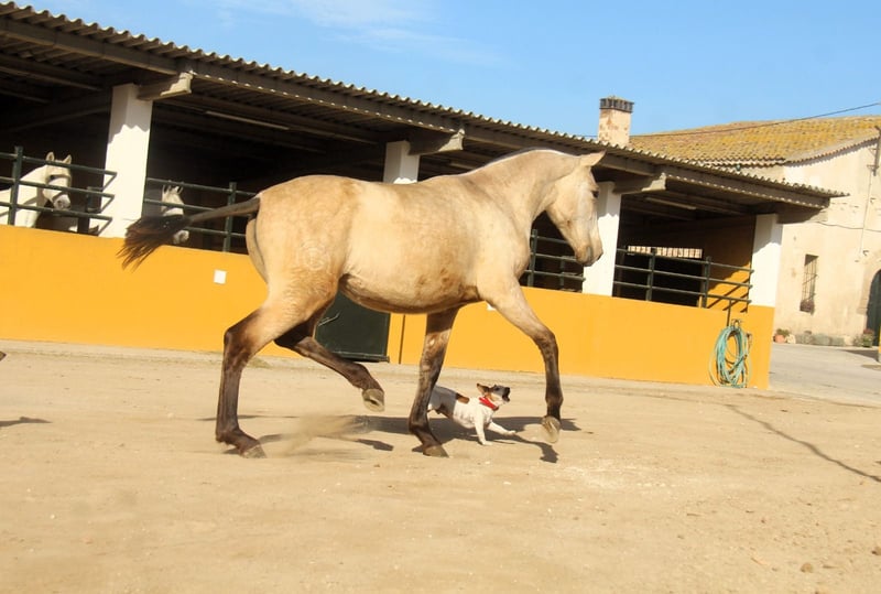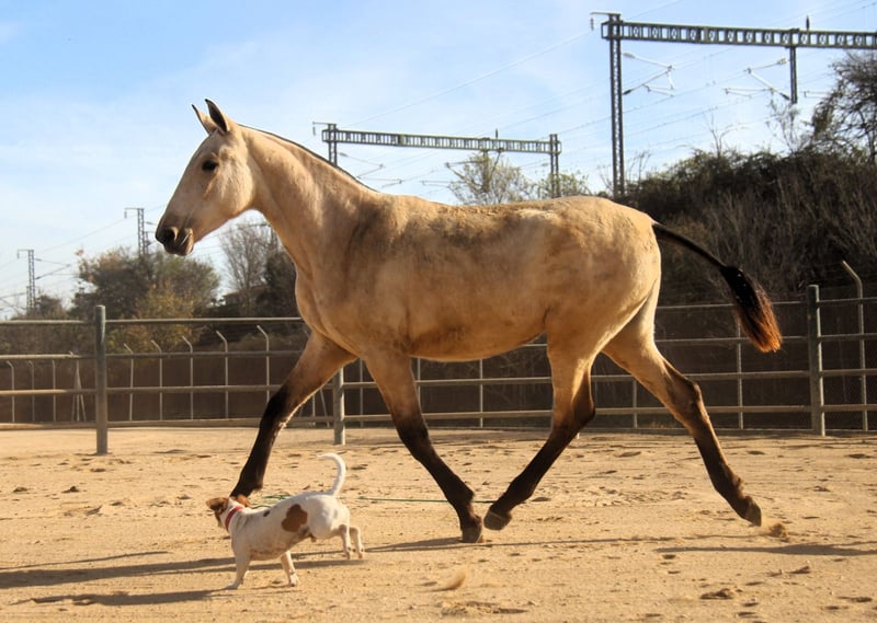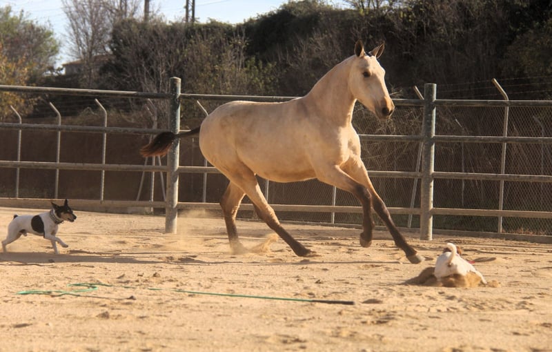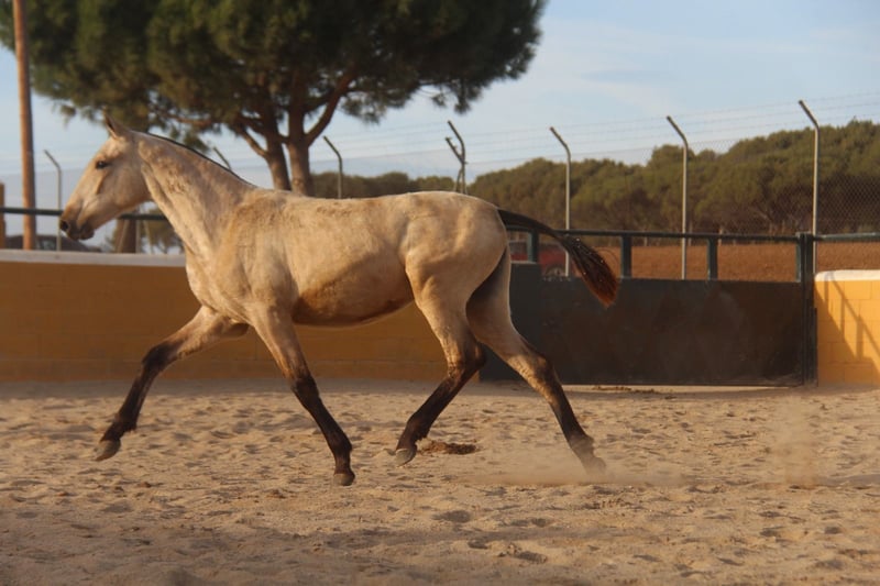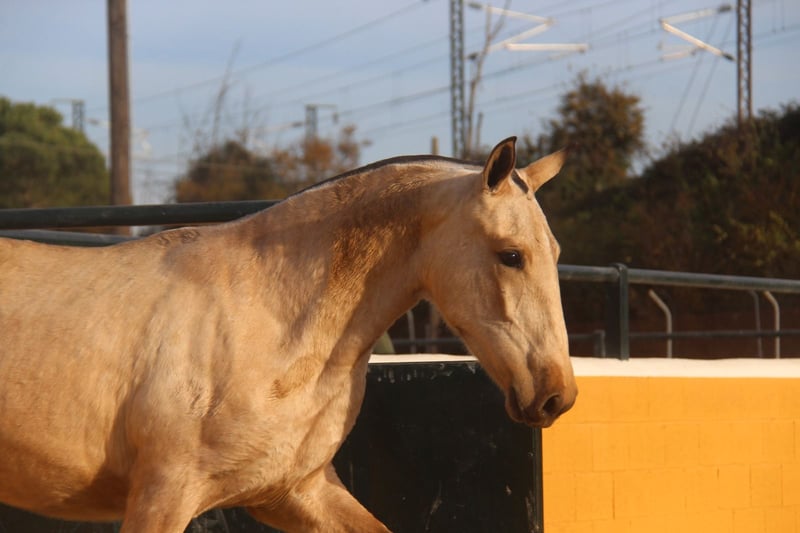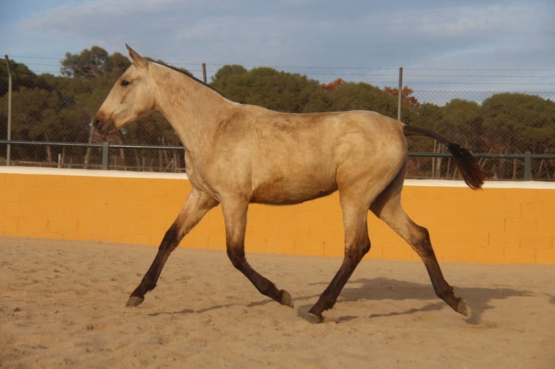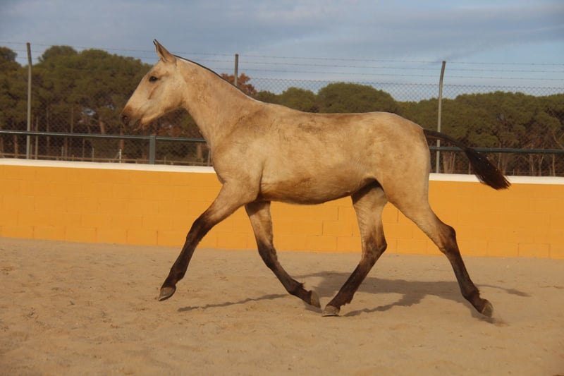 Diese bezaubernde PRE-Falbstute sucht ihren Herzensmenschen. Schon jetzt begeistert sie mit ihrer tollen Ausstrahlung und ihren schönen Gängen. Ihre wunderschöne Farbe, kombiniert mit ihrem harmonischen Gebäude und ihrer eleganten Bewegung, machen sie zu einer sehr interessanten jungen Stute mit viel Potenzial für die Zukunft. Charakterlich zeigt sie sich ihrem Alter entsprechend noch etwas zurückhaltend, dabei aber sehr neugierig, freundlich und bereits jetzt ausgesprochen lieb im Umgang. Sie nimmt ihre Umgebung aufmerksam wahr und entwickelt sich zu einer angenehmen und menschenbezogenen Partnerin. Die junge Stute ist 1,5 Jahre alt. Ausgewachsen schätzen wir sie auf etwa 1,63 m Stockmaß. (Ihre Mutter ist 1,60 m groß und ihr Vater 1,68 m.) Aktuell wächst sie in ihrer Jungpferdeherde auf, wo sie sich sozial sehr gut entwickeln kann. Mit ihren Bewegungen, ihrer Ausstrahlung und ihrem Erscheinungsbild können wir sie uns später in vielen Bereichen vorstellen – in der Dressur, in der Working Equitation, für Shows, in der Zucht oder einfach als treue Freizeitpartnerin. 📍 Standort: Barcelona, Spanien Ein persönliches Kennenlernen vor Ort ist jederzeit möglich. Der Transport kann unkompliziert organisiert werden.