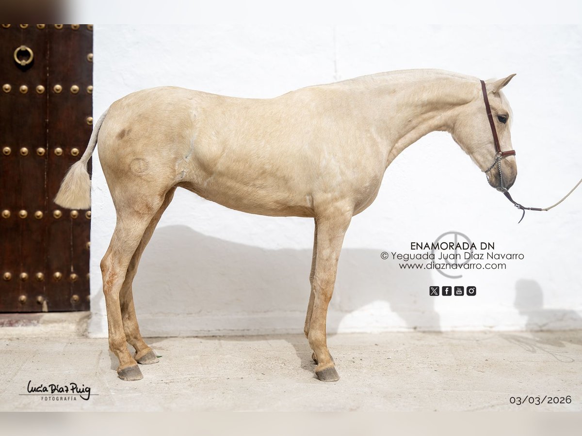Opportunity to acquire a beautiful and promising mare! For sale is a stunning PRE mare born in 2024. She is palomino in color, with a shiny, eye-catching coat. Her height is 156 cm, making her suitable for various disciplines and equestrian activities. This mare comes from excellent bloodlines, ensuring quality and potential for future competitions or breeding purposes. She has a balanced temperament, suitable for both experienced riders and those new to the world of horses. Genetic coat color (genotype): ggAaeeCCrNN Height: 1.56 m at the withers (June 25, 2025) Comments: A mare with great potential, capable of producing offspring of all coat colors except for the isabellas. Lineage: Divo, Norte A, Cepellón, Velero XI, Lego, Lebrijano III, Bizarro XIV, Llamativo II. Military Stud, Vizconde de la Montesina, D. Benito Zoido, Paco Martí. Don’t miss the opportunity to add a high-quality, beautiful mare to your family or estate. For more information and inquiries, please do not hesitate to contact us.