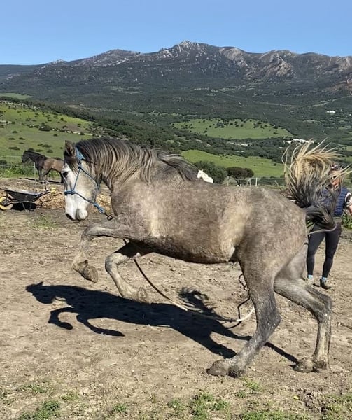 Eddi ist eine sehr liebe PRE Stute, die im März ‘26 drei Jahre ist. Sie folgt ihrem Menschen überall hin. Sie ist ein ultra Schnelllerner und bestimmt auch gut für Freiarbeit, Zirzensik und durch ihre kompakte Art auch für die hohe Schule geeignet. Sie ist kein Gewichtsträger, eher zierlich für den leichten Reiter/Reiterin. Sie ist grunderzogen und was das allgemeine Handling angeht, anlongiert/gearbeitet in beide Richtungen und Gangarten. Sie ist sehr lieb und lässt sich überall anfassen und lässt sich auch gut die Hufe bearbeiten. Sie geht auch schon ganz ganz gut von der Herde weg mit mir im Wald spazieren! Anfragen gerne per Whats App.