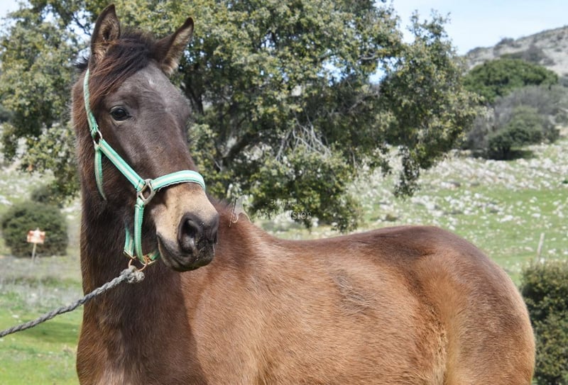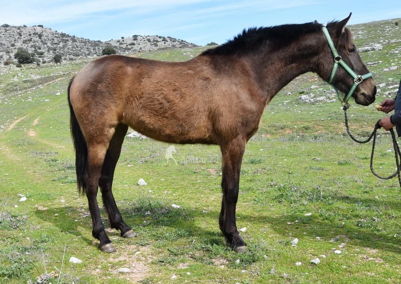 lieber Charakter, roh, steht mit anderen Pferden draußen, spezielle Farbe, Falbe mit PRE Papieren, Abstammung: Paco Marti, Yeguada Jordi Matas Pulido www.elegante-andalusier.com