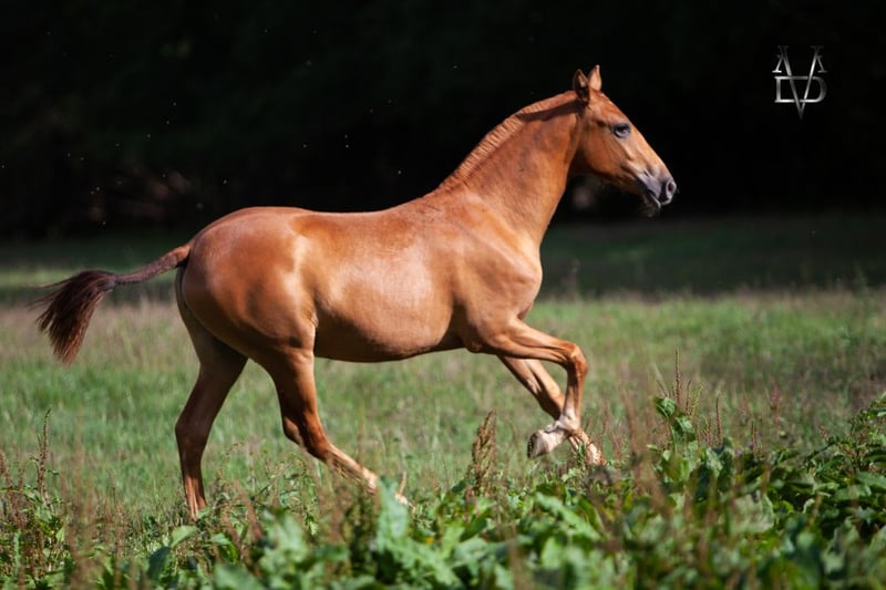 MARAMEA Superb chestnut filly + Prl Full papers ANCCE. Top origins, daughter of Tarzano GSA. Perfectly handled, sweet as can be. Ideal for leisure, dressage, breeding. Certified pregnant by ultrasound with a black base stallion (ggEEaaCrPrl) for a foal in 2026. Price displayed for the mare without the 2026 foal. Price with the foal 12,000 euros. For more information, please contact us.