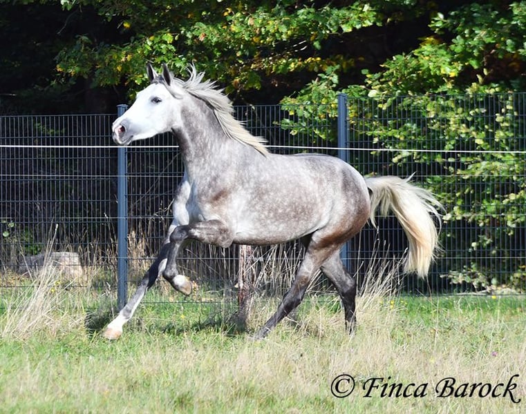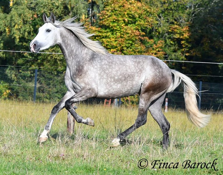 Ras: PRE Naam: Buleria AR IV Geslacht: Merrie Stockmaat: 1,59 m Geboren: 20-09-2022 Kleur: Schimmel Prijs: € 9.800 Vader: Zurito MIBXBII v. Algabeño MIBXII Moeder: Dakota CB v. Quebrado HBM II Buleria is een ontzettend lieve, lange en elegante merrie met een vriendelijk karakter. Ze kent het longeren met de cavessons, zowel met zadel als bit. Ze is licht aanrijbaar in de grondwerk- en gangenarbeid en toont zich als een echte leermeester. Haar zitcomfortabele bewegingen zijn bijzonder opvallend. Ze is nieuwsgierig en open, geniet van nieuwe taken en werkt altijd zelfverzekerd mee. Bij geluiden op de manege (tractor, kar, helikopter op het naburige veld) blijft ze rustig in haar paddockbox en kijkt aandachtig om zich heen. Ze lijkt te denken: "Hier gebeurt veel, dat wil ik zeker bekijken!" Buleria is bekend met gemengde groepshoudingen. Tijdens korte wandelingetjes rondom de manege toont ze zich weinig schrikachtig en eerder nieuwsgierig naar onbekende dingen. Met haar krijgt u een jonge dame die al goede basisvaardigheden heeft, maar nog alle opties openhoudt voor verdere training. Inclusief klinisch dierenartsonderzoek en röntgenfoto’s. Contact: Finca Barock, Tel. 0173-696 31 81, 56291 Wiebelsheim