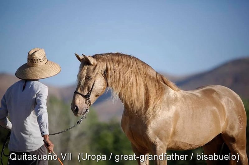 lieber Charakter, neugierig, menschenbezogen, roh, steht mit anderen Stuten draußen, spezielle Fabe, Isabela (PrlPrl) mit PRE Papieren, Abstammung: Yeguada San Benito Abad, Yeguada la Llana, las Medranas, Escalera, Bohorquez, Ururopa Gaucho III ist qualifiziert www.elegante-andalusier.com