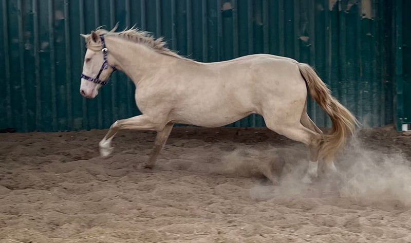 Uitstekende kans! Te koop staat een prachtige en elegante merrie van het PRE-ras, geboren in 2022. Het is een perlino met een indrukwekkende kleur en uitstraling, met een stokmaat van 159 cm, ideaal voor wie op zoek is naar een paard met een voorname uitstraling. Ze is begonnen met dressuurtraining en combineert schoonheid, karakter en vaardigheden voor werk op de piste. Niet voor iedereen, alleen voor ervaren ruiters. Ze is nog jong en erg groen, nog een beetje wantrouwig. Ze beweegt in stap, draf en galop op de piste samen met andere paarden, maar heeft nog veel toewijding en training nodig. Zorgzaam en verwend, met een uitstekende gezondheid. Er wordt gezocht naar een goede plek voor haar waar ze verder getraind kan worden. Voor meer informatie, neem gerust contact met ons op.