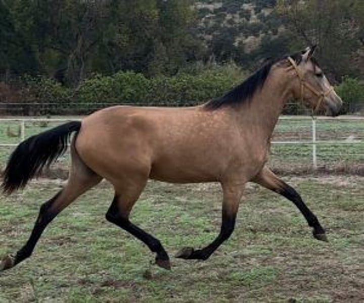 Diluted, beautiful and full of potential: a winning bet on both counts This filly has everything it takes to turn heads wherever she goes: a dilute coat, excellent movement, and a beauty that leaves no one indifferent. She is ideal for someone who wants raise with quality in diluted coatsbut also for the one who dreams of breaking her in and taking her to dressage competitions, because she is more than capable of standing out in the ring and “making an impression”. She grew up free-range, in an environment that promotes strong joints and good overall health, but her breeder has almost daily contact with her: she is handled, allows herself to be touched, led, and manipulated without difficulty. For her young age, she has an extraordinary temperament and a very calm demeanor, which will greatly facilitate her future work. To find such a pretty filly, with such quality of movement, in a diluted coat color and with such a temperament, at this priceThis is truly unusual. She is a very worthwhile investment, both if you plan to compete with her and if you want her to produce high-quality foals later on. And in this case, the sense of urgency is justified: Starting in January, her price will increase considerably.. At IberHorse: We select foals and horses with their true potential in mind, not just the photo. If you feel this filly could be your next star, contact us to schedule a call or come see her in person. Opportunities like this don't come around often.
