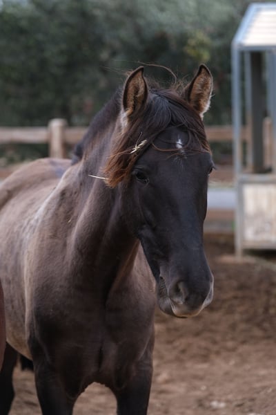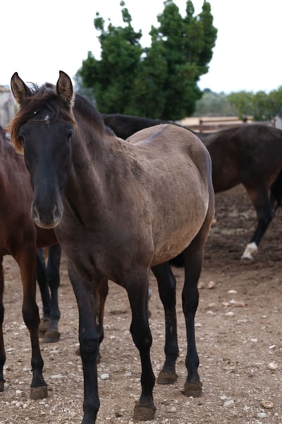 Esta hermosa yegua PRE en el color especial negra ceniza ya tiene un carisma increíble a la edad de 1,5 años y se mueve con gran elegancia, además de su gran apariencia. Una yegua joven muy especial. Tiene un carácter muy dulce y curioso y cuando la miras a los ojos, puedes ver el gran corazón que tiene. Aún está en bruto y vive en manada con otras yeguas. En el futuro podemos imaginarla en varios ámbitos, ya sea en doma clásica, equitación de trabajo, exhibición, cría o simplemente como compañera de ocio. Es una yegua joven muy especial con un gran corazón, que busca a la persona más cercana a su corazón para que puedan continuar su camino juntos. Localización: Alicante, España, se puede organizar un encuentro y transporte sin problemas.