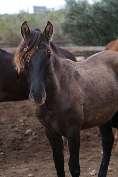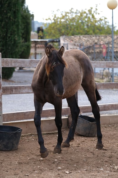 This beautiful PRE mare in the special color negra ceniza has already with her 1.5 years an incredible charisma and moves with a great elegance, in addition to her great appearance. A very special young mare. She has a very sweet and curious character and when you look into her eyes, you can see what a big heart she has. She is still raw and lives in a herd with other mares. In the future we can imagine her in various areas, whether in dressage, working equitation, showing, breeding or simply as a leisure partner. She is a very special young mare with a big heart, looking for the person close to her heart so that they can continue their journey together. Location: Alicante, Spain, a meeting and transport can be organized without any problems