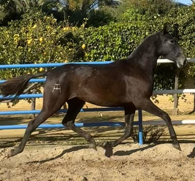 For Sale: PRE Mare – Chestnut – Born 2023 An excellent daughter of SIMPÁTICO DE MILLÁN III, the youngest breeding stallion in history and the most influential sire of the past decade in Spain. He is the stallion with the most progeny reaching the finals of the PSCJ and the COPA ANCCE SICAB 2023 and 2024. Granddaughter of YACO DE TORRELUNA, a world champion and one of Spain’s most influential stallions in both conformation and classical dressage. A unique opportunity for equestrian enthusiasts! We are offering a beautiful Pure Spanish Horse (PRE) mare born in 2023. **Features:** - **Breed:** Pure Spanish Horse (PRE) - **Gender:** Mare - **Color:** Chestnut - **Height:** 165 cm - **Discipline:** Classical dressage This mare stands out for her elegance and balanced temperament, making her an ideal partner for those seeking a reliable dressage horse. With a gentle character and great potential, she is suitable for both experienced riders and those beginning their dressage journey. Don’t miss the chance to acquire a mare with an exceptional pedigree and a promising future. For more information and to arrange a viewing, please contact us. Your new equine partner is waiting!