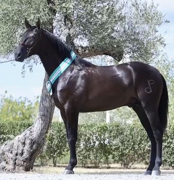 Uitstekende tweejarige merrie, dochter van Impaciente II, ELITE-dekhengst. Ideale merrie voor sport en fokkerij vanwege haar prachtige genetica en bewegingen. Drachtig van PATRÓN DE MILLAN: een van de beste zwarte dekhengsten van dit moment met El Hierro de Valdeolivas, kleinzoon van DUIKER en afstammeling van JALON (wereldkampioen) en TROVADOR.