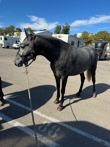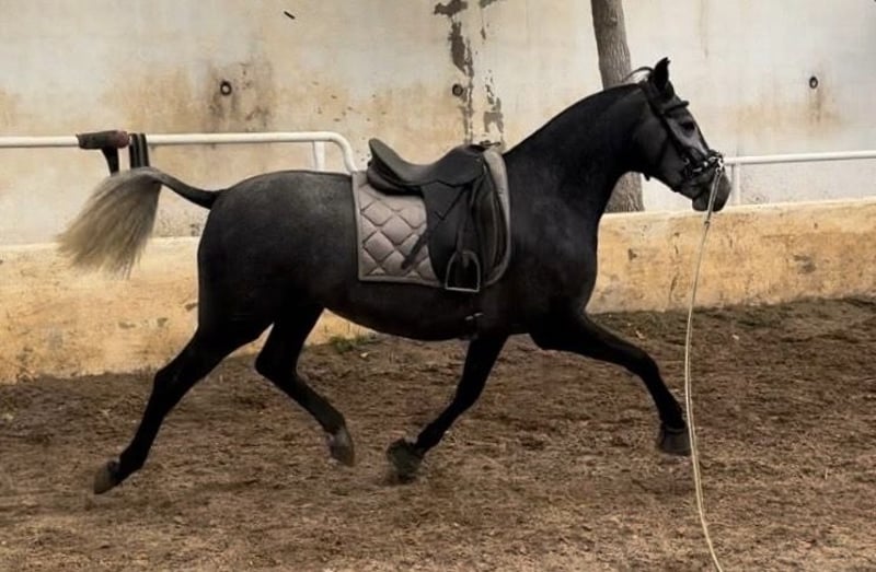 This young PRE mare with the very best genetics borders on perfection in appearance alone: a wonderfully balanced conformation with a great neck, perfect topline and a solid foundation give you an idea at first glance that she is the daughter of highly awarded parents. It is no coincidence that the young VARONESA has already shone at several breeding shows. She is also currently being gently broken in by her owner and is showing excellent conformation: she is reliable, willing to work and always has a clear head. VARONESA comes from a small stud with the best breeding. She naturally has full papers from the Spanish breeders' association ANCCE. Location Spain.