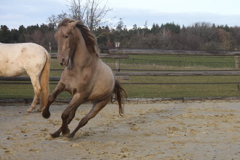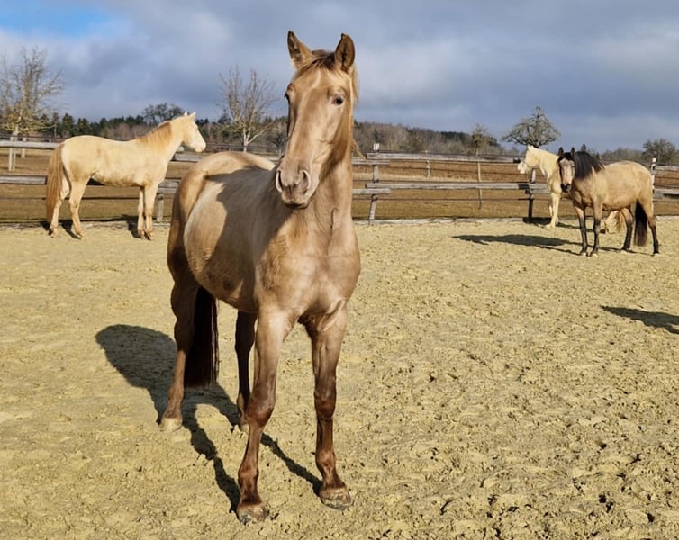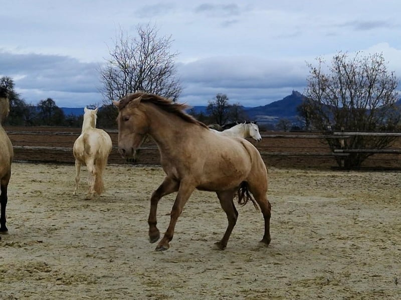 **Verkaufsanzeige: Nachwuchsstute geb. 2022 – Pearl, 160 cm** Zum Verkauf steht eine vielversprechende Nachwuchsstute, geboren im Mai 2022. Kelea besticht durch ihre elegante, aber trotzdem barocke Erscheinung und ihr vielversprechendes Bewegungspotential. Mit einem Stockmaß von 160 cm bietet sie die perfekte Größe für den ambitionierten Freizeitreiter oder den zukünftigen Turnierreiter. Sie verfügt über ein freundliches, aufgeschlossenes Wesen, das sie zu einem angenehmen Partner macht. Ihr ausgeglichener Charakter und Lernwille lassen eine vielversprechende sportliche Entwicklung vermuten. Auch für die Zucht kann sie sehr interessant sein, da das Pearl-Gen ihrer Mutterlinie bisher unbekannt ist. Sie hat den Farbgencode: ggEeaaPrlPrl Kelea ist bei uns geboren und sorglos in einer gemischten Herde im Offenstall mit Weidegang aufgewachsen. Insgesamt ist sie eher ein Spätentwickler, weshalb wir sie bisher auch nicht angeritten haben. Nun ist sie aber bereit, ihre weitere Ausbildung aufzunehmen und sich zu einem zuverlässigen Allround-Pferde-Partner zu entwickeln. Selbstverständlich wurde sie regelmäßig entwurmt, die Hufe gemacht und Tetanus geimpft. Letztes Jahr haben wir einen Züchtercheck machen lassen, bei dem alle 14 Röntgenbilder ohne jeglichen Befund waren. Bei Interesse oder weiteren Fragen stehe ich gerne zur Verfügung.