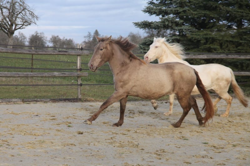 **Verkaufsanzeige: Nachwuchsstute geb. 2022 – Pearl, 160 cm** Zum Verkauf steht eine vielversprechende Nachwuchsstute, geboren im Mai 2022. Kelea besticht durch ihre elegante, aber trotzdem barocke Erscheinung und ihr vielversprechendes Bewegungspotential. Mit einem Stockmaß von 160 cm bietet sie die perfekte Größe für den ambitionierten Freizeitreiter oder den zukünftigen Turnierreiter. Sie verfügt über ein freundliches, aufgeschlossenes Wesen, das sie zu einem angenehmen Partner macht. Ihr ausgeglichener Charakter und Lernwille lassen eine vielversprechende sportliche Entwicklung vermuten. Auch für die Zucht kann sie sehr interessant sein, da das Pearl-Gen ihrer Mutterlinie bisher unbekannt ist. Sie hat den Farbgencode: ggEeaaPrlPrl Kelea ist bei uns geboren und sorglos in einer gemischten Herde im Offenstall mit Weidegang aufgewachsen. Insgesamt ist sie eher ein Spätentwickler, weshalb wir sie bisher auch nicht angeritten haben. Nun ist sie aber bereit, ihre weitere Ausbildung aufzunehmen und sich zu einem zuverlässigen Allround-Pferde-Partner zu entwickeln. Selbstverständlich wurde sie regelmäßig entwurmt, die Hufe gemacht und Tetanus geimpft. Letztes Jahr haben wir einen Züchtercheck machen lassen, bei dem alle 14 Röntgenbilder ohne jeglichen Befund waren. Bei Interesse oder weiteren Fragen stehe ich gerne zur Verfügung.