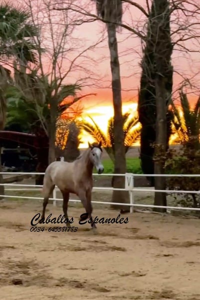Top PRE mare, harmonious, baroque conformation, correct foundation. This mare immediately catches the eye with her charm and zest for life. She is well-behaved and very sociable. She has three excellent basic gaits. She is now being lunged and thus prepared for her life as a future riding horse. The mare not only has morphological qualities, but will also shine in any dressage or working equitation test. Pedigree; Candau The mare is being sold on commission. She is welcome to stay with us in training. An AKU will be organized at short notice. International transportation.