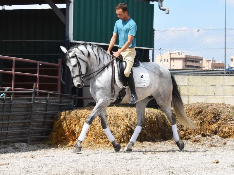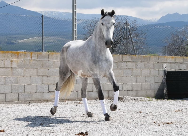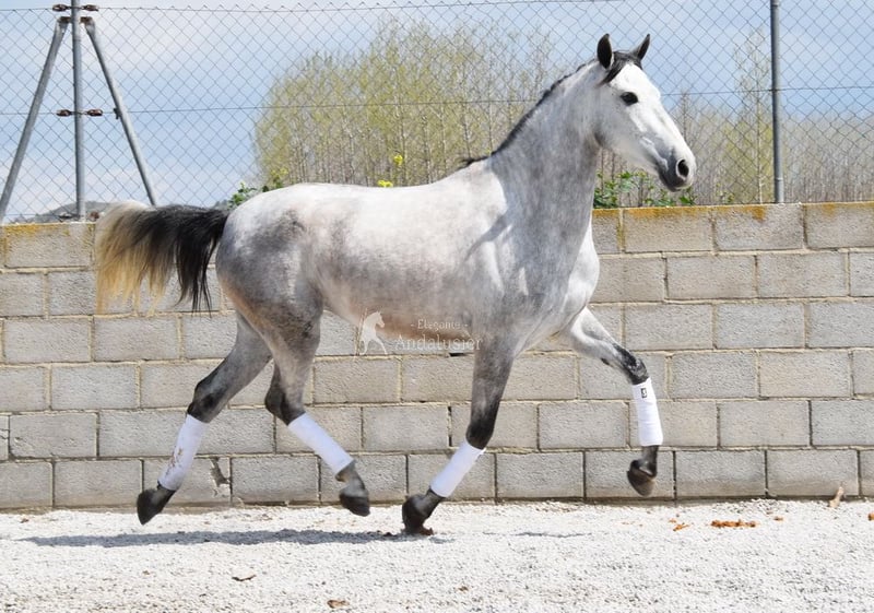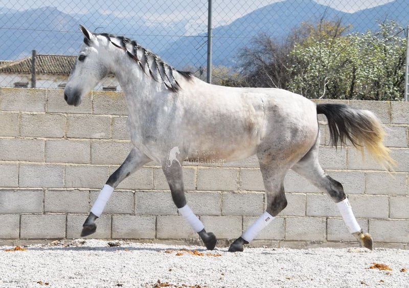 lieber Charakter, in den Grundgangarten geritten und Gelände, gute Bewegungen und Abstammung, hat bereits Röntgen und ist Piroplasmose negativ, Abstammung: Valdeolivas, Yeguada Militar, Escalera, Castillo Villafranca, Marques de Velilla Opa Hebreo XIX und Oma Ald-Berrinches sind qualifiziert www.elegante-andalusier.com