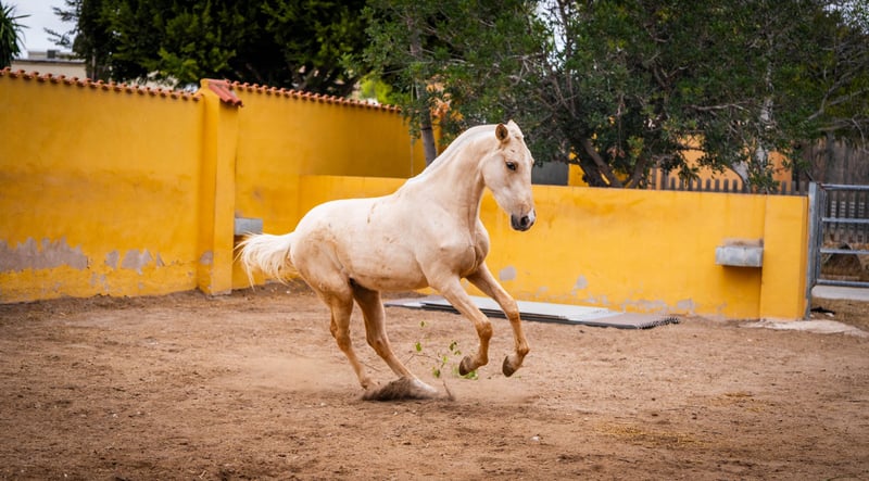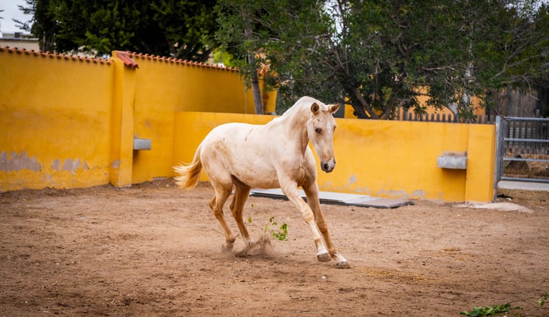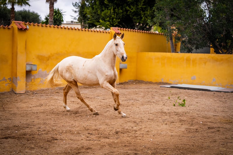 Jungpferd: Kräftige und imposante Palomino Stute mit viel Selbstbewusstsein und Temperament für den Sport oder Zucht geeigent. Sehr gutes Papier mit Wurzeln aus der Yeguada Militar ( Cepellon (2004), Zedimir III ( 2001 ), Remache XIII ( 2002 ) und Lego ( 1991 ) Farbgenetik für die Zucht liegt ebenfalls vor: ggeeAACrC / Mehr Infos auf Anfrage!