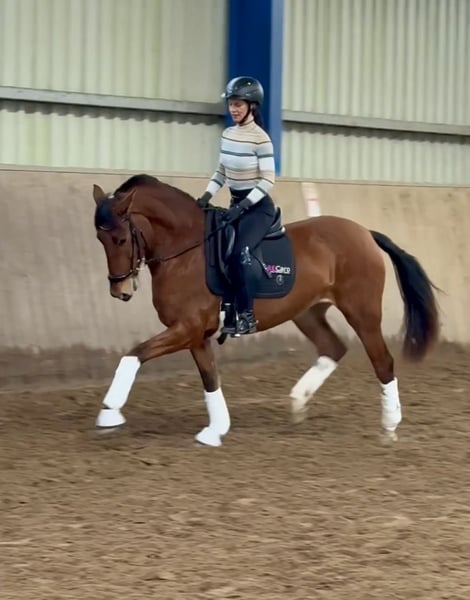 Hier reift ein ganz besonderes Juwel heran, das keine Wünsche offen lässt: ⚜️ Charakter: sehr menschenbezogen, anhänglich, verschmust. Zudem stets in sich ruhend und unerschrocken, auch im Gelände. Mit sehr viel will to please ausgestattet versucht dieses Pferd Ihnen alles recht zu machen, im Umgang wie beim Reiten. ⚜️ Qualität: Mit 3 sehr guten Grundgangarten und toller Rittigkeit, eignet sich diese besondere Stute genauso für den Einsatz im Sport (insb. Dressur und Working Equitation) wie auch im Freizeitbereich. ⚜️ Genetik: alte PRE Linien, bis auf das 15 Jh. zurückgehend, mit viel wertvollem Kartäuserblut (—> sehr noble Charaktereigenschaften, Robustheit) ⚜️ Exterieur: Wunderschöne im Hengsttyp stehende Stute, mit ganz korrektem Fundament, ca 165, starke Hufe, bisher ohne Eisen. ⚜️ Ausbildungsstand: Sicher geritten in allen GGA, erste Lektionen begonnen, toll im Gelände zu reiten, sehr angenehm im Umgang. ✅ Gesund, robust, schmiede- und verladefromm! ➡️ Bei Bedarf bieten wir unseren Kunden eine Übergangszeit mit Beritt und Reitunterricht an. Melden Sie sich gerne jederzeit bei weiteren Fragen oder um ein persönliches Kennenlernen zu vereinbaren: 015202833968 ➡️ Beachten Sie bitte, dass wir zum Schutz unserer Pferde, für das Vorstellen und Probereiten eine Gebühr von 45€ berechnen. ➡️ Weitere Informationen finden Sie auch auf unseren Socialmedia Kanälen: Zum Insta-Profil: PREcaroPferde https://www.instagram.com/precaropferde?igsh=MThzaDBmNTNpdW1mMg%3D%3D&utm_source=qr Zum Facebook-Profil: Carolin Nesarajah https://www.facebook.com/share/1AyDKVaDnU/?mibextid=wwXIfr