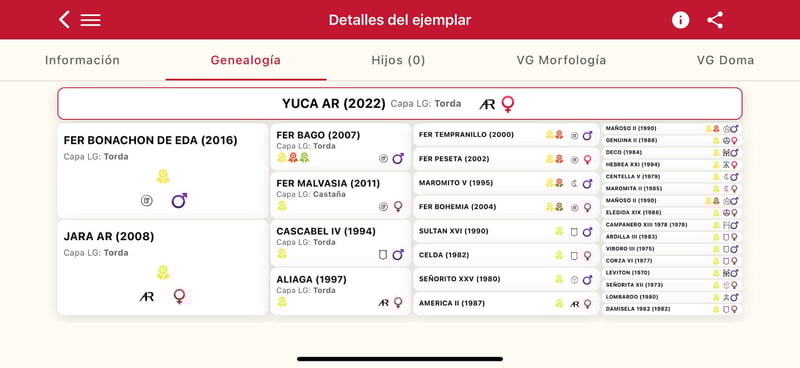 Nous avons décidé de vendre l'une de nos meilleures juments. Son nom est YUCA AR. Pura Raza Española. 3 ans. Taille 167 cm. Elle est issue de Fer Bonachon (photos jointes). C'est l'un des chevaux les plus récompensés ces dernières années. Cinq fois vainqueur au Sicab. Elle a hérité de l'élégance et de la conformation de son père. Elle a une très bonne conformation, des mouvements de TOP niveau (regardez la vidéo) et un caractère adorable. Très facile et douce dans toutes les circonstances. Nous sommes totalement convaincus qu'elle peut répondre aux attentes des clients les plus exigeants. QUALITÉ TOP TOP. Malheureusement, il n'est pas facile de trouver des juments comme elle. Un véritable trésor à ne pas manquer ! Le transport peut être facilement organisé.