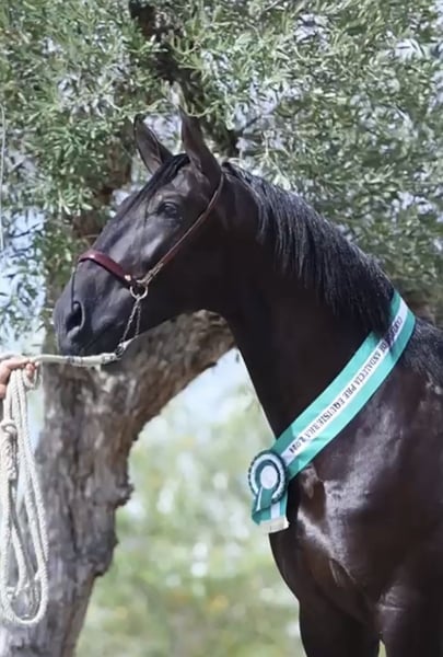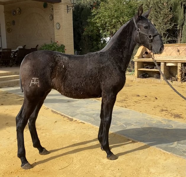 Uitstekende tweejarige merrie, dochter van Impaciente II, ELITE-dekhengst. Ideale merrie voor sport en fokkerij vanwege haar prachtige genetica en bewegingen. Drachtig van PATRÓN DE MILLAN: een van de beste zwarte dekhengsten van dit moment met El Hierro de Valdeolivas, kleinzoon van DUIKER en afstammeling van JALON (wereldkampioen) en TROVADOR.