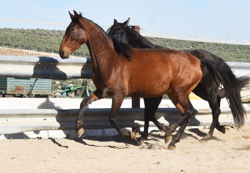 nice character with temperament, raw, stands outside with other mares, good movements, pedigree: Escalera, Yeguada de Ymas, Yeguada Militar, media Guitarra, Paco Marti, Jesus Gil y Gil www.elegante-andalusier.com