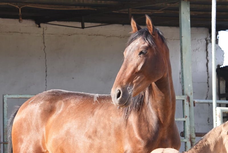 nice character with temperament, raw, stands outside with other mares, good movements, pedigree: Escalera, Yeguada de Ymas, Yeguada Militar, media Guitarra, Paco Marti, Jesus Gil y Gil www.elegante-andalusier.com