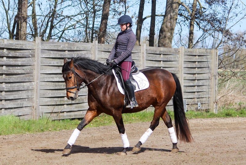 Bengala Ducal ist eine mittelgroße PRE Stute mit top Charakter. Sie ist leistungsbereit und sanftmütig. Bengala verfügt über gute GGA, mit einem guten Schritt, einem sitzbequemen Trab und einem sehr schön durchgesprungenen Galopp. Sie hat ein schönes, harmonisches Gebäude und ist eher kräftig, als zierlich. Bengala sollte vielseitig veranlagt sein. Sowohl für die Dressur, als auch für Working Equitation oder Freizeitreiten kann man sie sich super vorstellen. Bengala hat eine starke Hinterhand und ist wendig. Bengala ist im Viereck und im Gelände geritten und erweist sich dabei als ein nervenstarkes und liebes Pferd. Es macht Spaß mit ihr zu arbeiten, da sie freundlich bei allem mitmacht. Ihre Mutter hat bereits mehrere hochkarätige Nachkommen gebracht, unter anderem den bekannten Aragón Ducal. Väterlicherseits kommt Bengala aus der Cacique IX-Linie, d.h. sie ist mit Poeta de Susaeta eng verwandt. Die Stute ist in Deutschland geboren und im Herdenverbund aufgewachsen. Die Yeguada Ducal ist das zweitgrößte PRE Gestüt in Deutschland. Die Erfolge unserer Pferde im nationalen und internationalen Turniergeschehen sind weltweit anerkannt. Das Gestüt gilt als eine der Top-Adressen für qualitätvolle PRE.