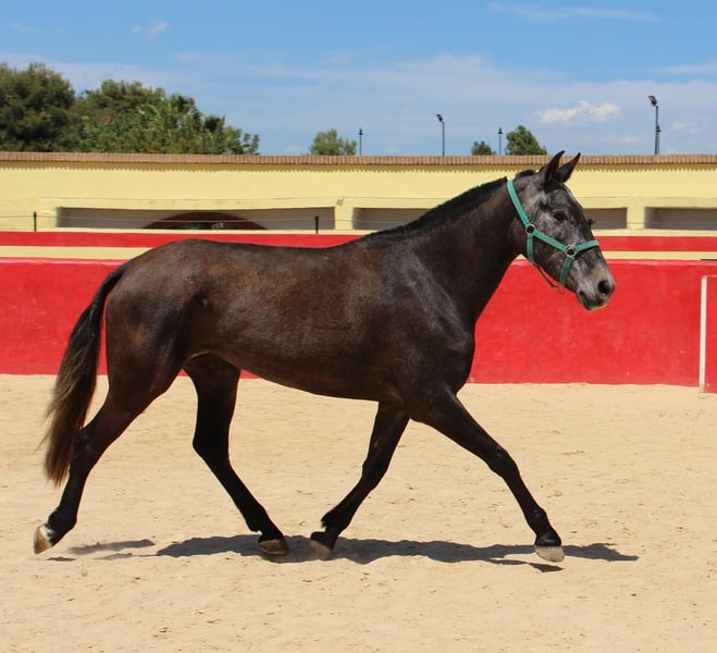 Belle jument PRE grise nommée « Alegria » à vendre. À l’âge de 2 ans, elle a déjà une taille actuelle de 1,61 cm. Alegria manie le lièvre et a déjà été lancée, mais peut encore apprendre beaucoup. Elle a un papier complet. Plus d’informations sur demande! Votre POST-YOUR-HORSE-TEAM!