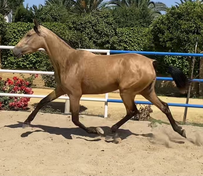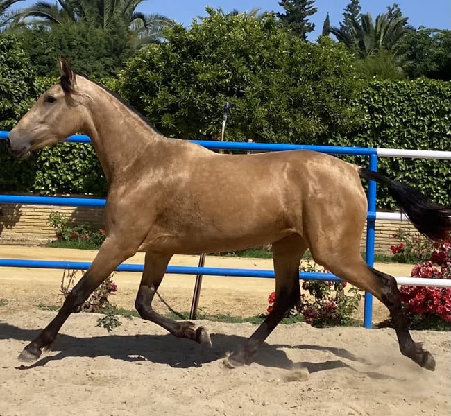 Excellente jument Baya gestante de l'étalon Palomino petit-fils de Simpático de Millán III, Improver Breeder. Magnifique opportunité d'acheter une jument pour l'élevage ou le sport et de profiter de sa noblesse exceptionnelle, de sa beauté et de sa magnifique génétique.