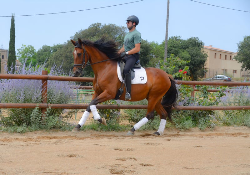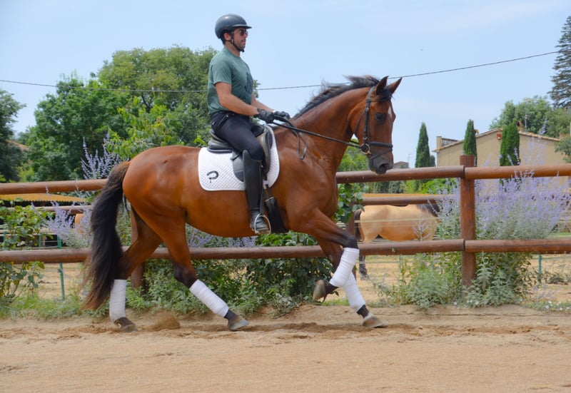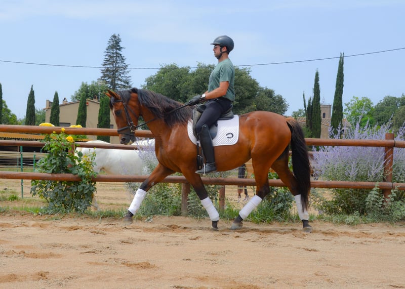 Jument de 4 ans avec un bon caractère, montée en carrière et sortant en extérieur, 166 cm de hauteur.