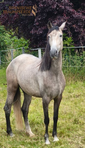 Annuncio di vendita: Splendida femmina di PRE in vendita Cerchiamo una nuova casa per la nostra affettuosa femmina di PRE. Razza: Pura Raza Española (PRE) Genere: femmina Anno di nascita: 2020 Colore: roano Altezza al garrese: circa 158 cm Utilizzo: tempo libero La nostra femmina si distingue per il suo carattere amichevole e socievole. È ben educata, tranquilla in maneggio e si presta perfettamente a cavalieri da tempo libero che desiderano godersi uscite rilassanti. È ben socializzata e ha già maturato alcune esperienze in campagna. Il suo movimento armonioso e il suo aspetto attraente la rendono una vera bellezza. Per interessati o per ulteriori informazioni, saremo lieti di ricevere un vostro messaggio! Località: 54558 Contatto: tramite WhatsApp al 0176 95448058 Il trasporto può essere organizzato Certificato di salute recente disponibile Non vediamo l'ora di sentirvi!