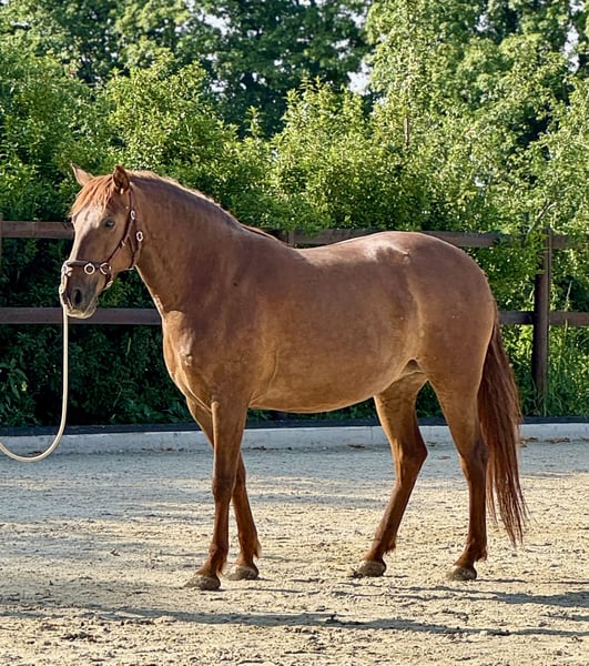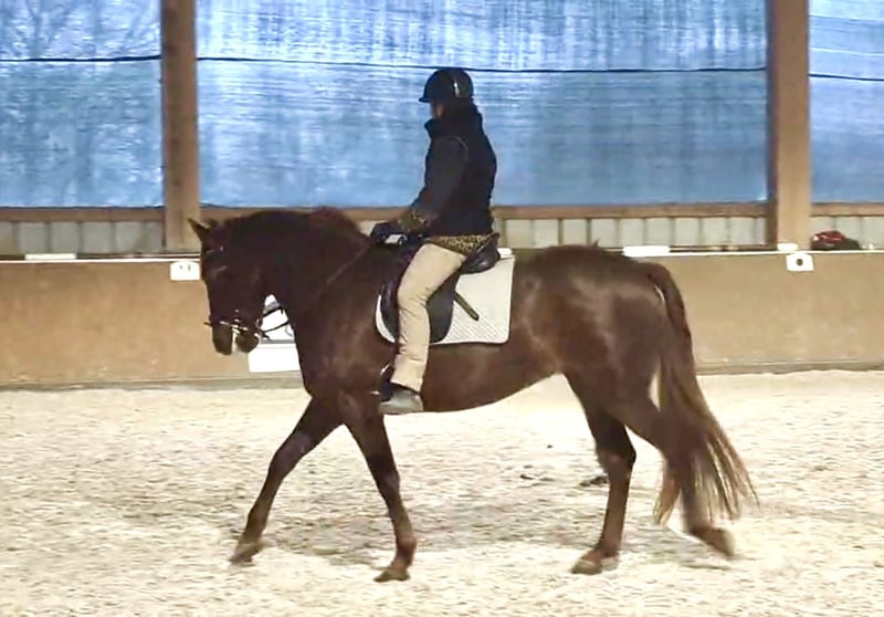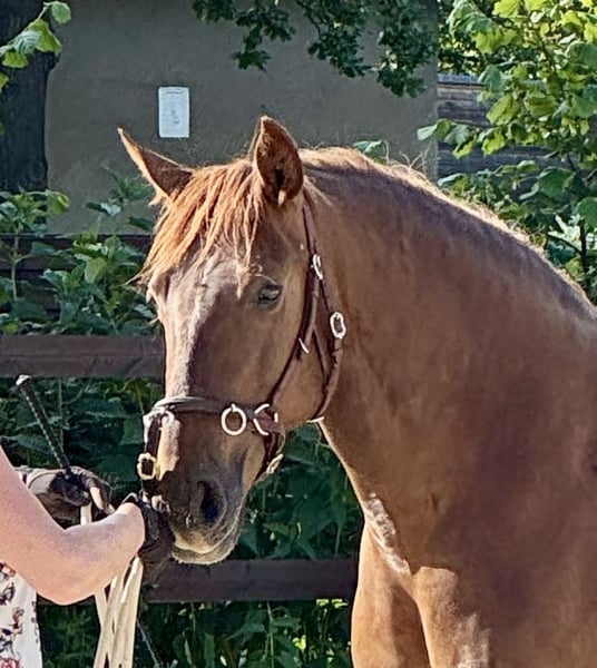 Treidelhof Impresiva est une jument très talentueuse, elle a été approuvée avec une très bonne évaluation (High breed quality) par la commission espagnole. Impresiva est charmante, classique avec une excellente mécanique d'allure et de mouvement. Une jument qui nous enthousiasme. Son stm est d'environ 1,58-1,60m. Elle est très tournée vers l'homme et très intelligente. Malgré cela, elle a un intérieur équilibré et serein. Sa ligne convainc aussi bien dans la tauromachie que dans l'équitation de travail. Apprendre ne lui pose aucun problème et elle est enthousiaste lorsqu'elle peut faire quelque chose avec l'homme et cherche toujours à plaire. Nous souhaitons ici des mains ambitieuses, aimantes, travaillant toujours dans l'intérêt du cheval et le soutenant.