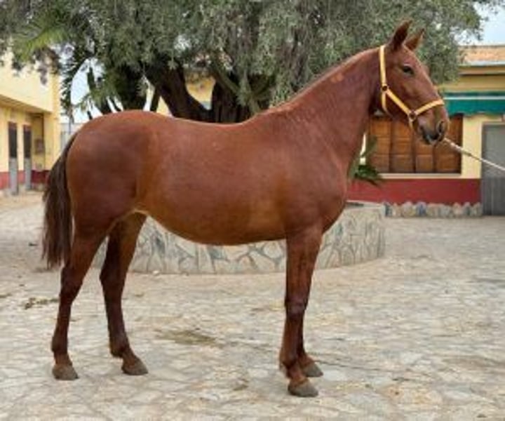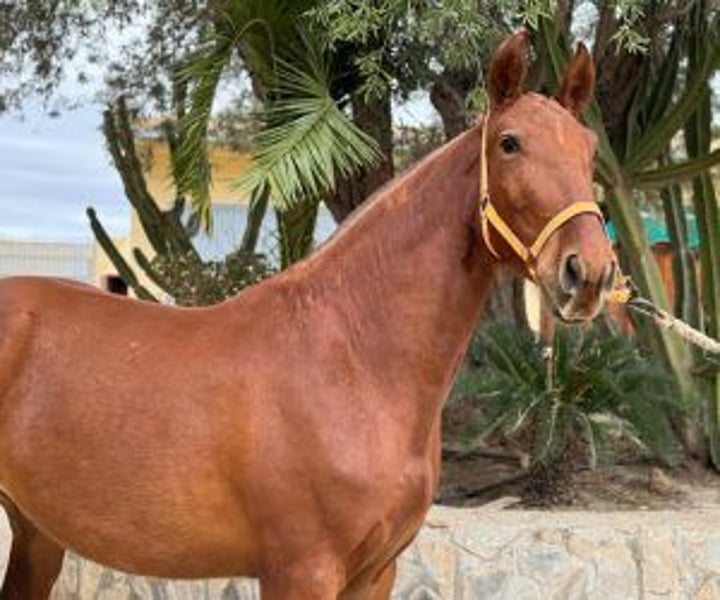 Magnificent Escalera ALEZANE mare at an exceptional price! – for a limited time Do you dream of an equestrian companion who will not only fill your life with joy, but also promises a bright future? Today could be the day your dream comes true! Let yourself be seduced by this beautiful chestnut mare, still to be drawn up, of which the gentle and easy temperament to manage will conquer you instantly. What makes this mare truly unique, besides her wonderful character, is her ancestry. ESCALERA. Exactly, you are facing a direct descendant of one of the most emblematic and praised lines of the PRE. Think about what this means in terms of quality and future possibilities. And the best part is that we offer it to you at price without competition. We know that distance can be a concern when it comes to meeting her and bringing her to your home. But do not worry ! At the house of IberHorse, we have perfected the art of facilitating the purchase of horses remotely with more than 12 years of experience. Our intermediation service is completely reliable, promising a transaction without hassle or additional travel costs. Through a personalized virtual experience, we provide you with all the necessary information, photos and videos so you can decide with complete convenience and security. In addition, we offer you the opportunity to choose the future of your training. You can opt to take it as is and start training it yourself, or leave it in Spain under the care of professionals who will prepare it for you, ask us for prices if this option interests you. This is a golden opportunity to integrate a truly valuable mare into your life. Contact us and prepare to welcome an exceptional companion who will become the center of your equestrian universe. Ready to take the plunge? We facilitate the entire process so that it is safe and effortless for you. Let's talk and start your equestrian adventure with the perfect mare!