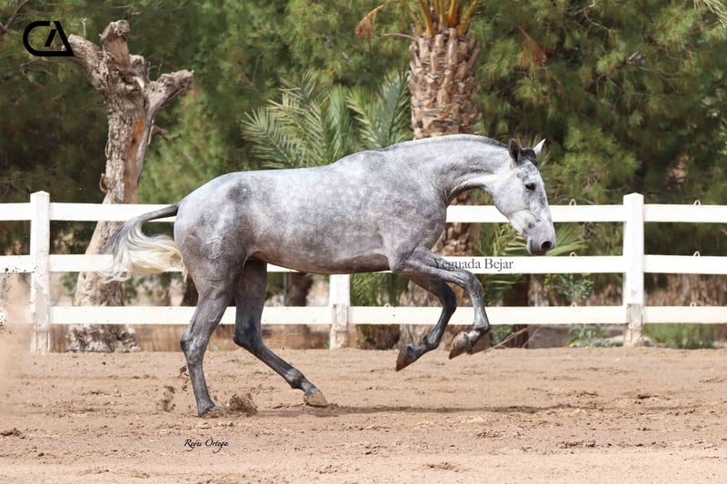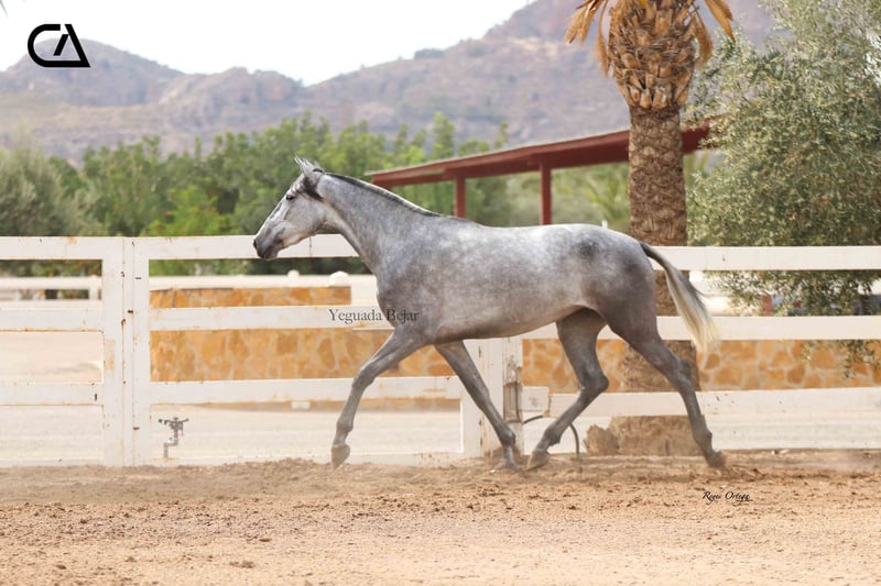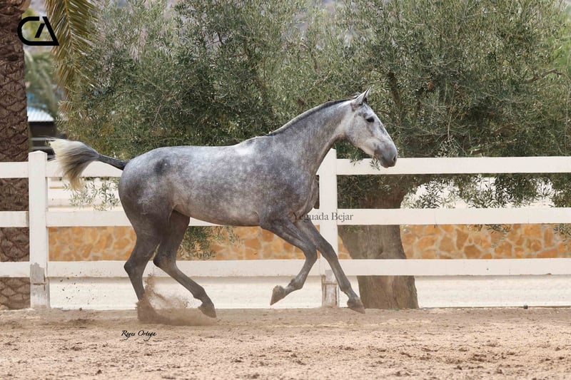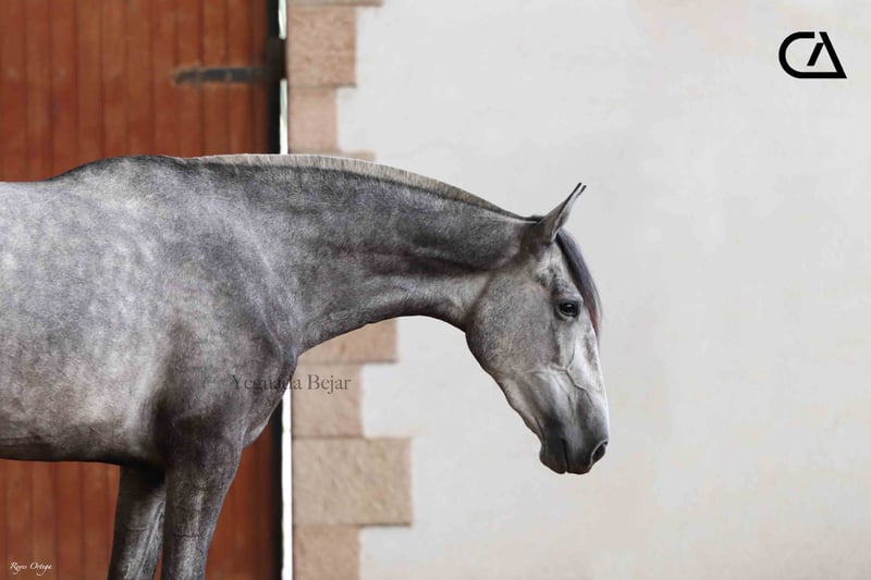 Itala de Tacon is a beautiful gray mare, feminine and with the typical beauty of the Spanish horse. In her family tree we can find importat genetic lines. On her sire side, Italo de la Vega is son of Nero II by Alonso Moreno de la Cova, Improver Breeding Stock, by Inédito (Improver Breeding Stock), and Itala V by Yeguada Los Retamales, by Digital (Improver Breeding Stock). On her dam side, Fer Barroca, is the daughter of two legendary exemplars that marked the foundation of Yeguada Ferrero, such as: Mañoso II and Fer Peseta.
