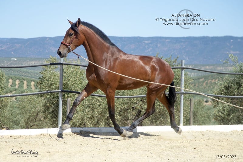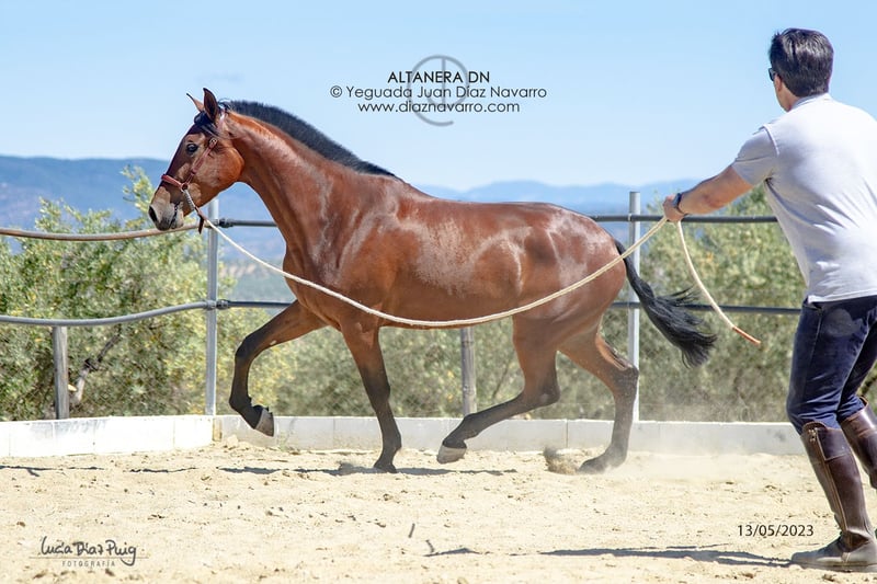 ¡Oportunidad de venta de una hermosa yegua de calidad! https://diaznavarro.es/altanera-dn Se ofrece en venta una yegua de PRE, nacida en el año 2020. Es de color castaño y cuenta con una alzada de 174 cm, lo que la hace imponente y elegante. Capa genética (genotipo): ggAAEECCNN Alzada: 1’74m a la cruz Doma: inicios de doma hace un par de años. Bella yegua con mucha clase y talla. Líneas: Lebrijano III, Lego, Remache, Cepellón, Velero XI, Llamativo II. Yeguada Militar, D. Benito Zoido, Vizconde de la Montesina. No pierda la oportunidad de adquirir una yegua con excelentes características y un linaje destacado. Para más información y detalles, no dude en contactarnos.