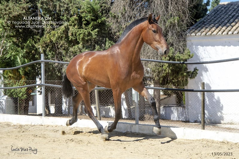 Verkaufsmöglichkeit für eine wunderschöne, hochwertige Stute! Zum Verkauf steht eine PRE-Stute, geboren im Jahr 2020. Sie ist kastanienfarben und hat eine Schulterhöhe von 177 cm, was sie beeindruckend und elegant macht. Genetische Veranlagung (Genotyp): ggAAEECCNN Schulterhöhe: 1,77 m an der Withers Dressur: Anfänge der Ausbildung Schöne Stute mit viel Klasse und Größe. Abstammung: Lebrijano III, Lego, Remache, Cepellón, Velero XI, Llamativo II. Militärgestüt, D. Benito Zoido, Vizconde de la Montesina. Verpassen Sie nicht die Gelegenheit, eine Stute mit exzellenten Eigenschaften und herausragendem Pedigree zu erwerben. Für weitere Informationen und Details stehen wir Ihnen gerne zur Verfügung.