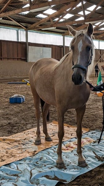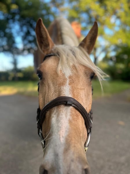 Deze prachtige PRE merrie in een speciale Palomino kleur zoekt haar hartsmens. Ze heeft een zeer lieve, open en geïnteresseerde aard en houdt ervan om samen met mensen nieuwe dingen te ontdekken. Ze is 7 jaar oud en ongeveer 1,65 m hoog. Tot nu toe heeft ze haar leven doorgebracht op een kleine hobbyfokkerij in een kudde en heeft al twee gezonde veulens gebaard (een vosmerrie met Prl en een cremello hengst). Om die reden is ze nog niet zadelmak, maar er is altijd met haar vanaf de grond gewerkt, zodat ze al bekend is met omgang en werk met mensen. Ze doet dit altijd liefdevol en gemotiveerd, waardoor ze in haar nieuwe thuis zonder problemen zadelmak gemaakt kan worden. In haar nieuwe omgeving kunnen we haar in veel verschillende disciplines plaatsen, zoals natuurlijk verderfokkerij of dressuur, maar ook voor Working Equitation, shows of gewoon als vrijetijdspartner. Haar jeugd heeft ze doorgebracht in een grote kudde met merries en haar veulens op de wei. Ze komt van een particuliere fokker en zou oorspronkelijk blijven als fokmerrie binnen de privé hobbyfokkerij met een gezin. Helaas moet de familie zich door persoonlijke omstandigheden schweren hart scheiden van de hobbyfokkerij en dus ook van deze prachtige merrie. Daarom zoeken ze een heel speciaal nieuw thuis voor haar. Locatie: Oost-Westfalen, Duitsland