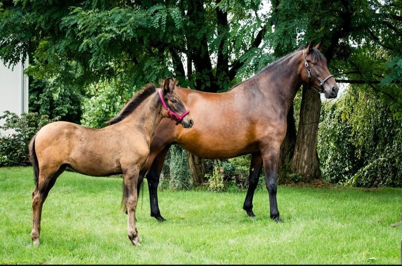 For sale is our seven-year-old mare Naranja (height: 16.1 hh), bred and lovingly raised on our own farm. She impresses not only with her excellent pedigree but also with her calm, human-oriented nature. Naranja has already been gently backed over the winter and proved to be eager to learn, clear-minded, and very cooperative throughout. She is already confidently ridden in the open, showing attentiveness and composure, and handles new impressions with ease. She also works motivatedly in ground work, consistently demonstrating reliability and sensitivity to aids. She is now seeking an experienced partner who can further develop her potential and help shape her future as a riding horse. In terms of bloodlines, Naranja comes from an excellent Escalera lineage. She has also proven herself in breeding: she produced a healthy, typy foal and has shown herself to be an instinctively confident, caring, and calm broodmare. In daily handling, she is straightforward, friendly, and very people-oriented. Her balanced temperament makes her particularly suitable for further training as well as for breeding. Of course, Naranja is regularly dewormed and vaccinated, and she is regularly seen by the farrier and dentist. A species-appropriate management and the health of our horses are our top priorities. Due to a simple reduction of our herd, we are offering her into responsible and nurturing hands. If you are genuinely interested, we look forward to hearing from you and arranging a personal meeting.