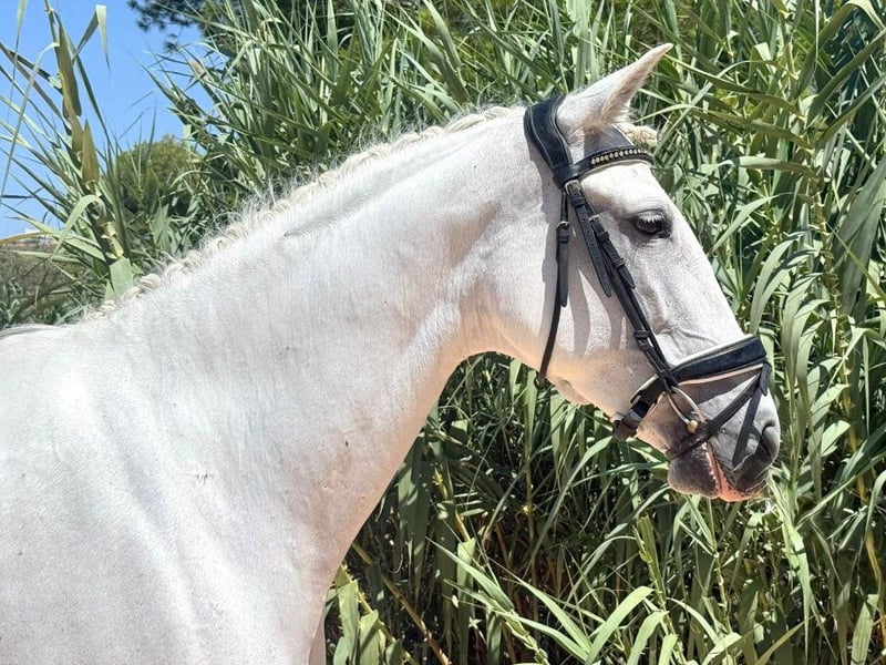 Wij presenteren een merrie van het Pura Raza Española (PRE), geboren in 2017, die alle kwaliteiten bezit die de hoogstaande exemplaren binnen de klassieke dressuur onderscheiden. Met een schofthoogte van 163 cm heeft ze een harmonieuze en elegante uitstraling die nog verder wordt versterkt door haar nobele en evenwichtige karakter, wat haar een ideale metgezel maakt, zowel in het dagelijkse werk als op de wedstrijdbaan. Momenteel voert ze alle oefeningen uit die behoren tot het Grand Prix-niveau, waarbij ze opvalt door haar concentratievermogen, leergierigheid en een buitengewone werkhouding. Ze beheerst op natuurlijke wijze de verzamelde gangen, piaffe, passage en wissels, en toont bovendien een grote controle in pirouettes en overgangen. Deze soepelheid, samen met haar elasticiteit en bewegingsvrijheid, maken haar een merrie met een enorm sportief potentieel. Wat betreft haar gezondheidstoestand, is ze negatief voor piroplasmose, wat haar in staat stelt om zonder beperkingen naar elke plek ter wereld te reizen. Hoewel ze geen recente röntgenfoto's heeft, zijn er in haar jonge jaren uitgebreide onderzoeken uitgevoerd, waarbij ze volledig gezond bleek te zijn zonder relevante bevindingen. Het betreft dus een merrie die de genetische en morfologische kwaliteit van de PRE combineert met een uitstekende dressuurniveau, een onberispelijk karakter en een zeer interessante potentie voor degenen die op zoek zijn naar een veelzijdig exemplaar dat klaar is om zowel in de competitie als in de selectieve fokkerij te schitteren.