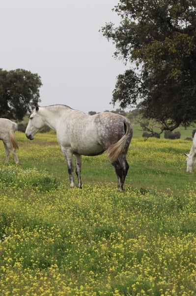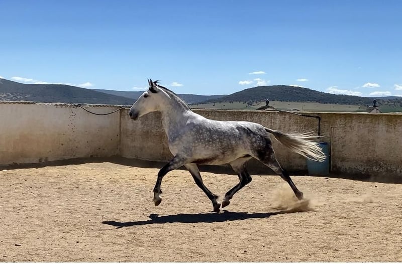 Ta piękna i imponująca klacz hodowlana wraz ze swoim małym synem pragnie znaleźć swój NA ZAWSZE DOM 🏡 Soraya to duża i mocno zbudowana klacz, o solidnym szkielecie, która została zarejestrowana w ANCCE. Porusza się dobrze i jest niesamowicie łagodna – o doskonałym charakterze i temperamencie. Jak to jest zwyczajem u Hiszpanów, nie jest szkolona do hodowli. Przebywa w grupie z innymi klaczami hodowlanymi i ich źrebiętami, i jest doskonale zintegracyjna. Na smyczy prowadzi brązowego ogierka, który prawdopodobnie wyrośnie na szarą klacz. Ojcem źrebięcia jest „Maradona DP”. Klacz zostanie w najbliższych dniach ponownie zapłodniona tym samym ogierem i po potwierdzeniu ciąży zostanie oddana. Jeśli te dwa skarby przypadły Ci do gustu, proszę o kontakt telefoniczny, abyśmy mogli jak najszybciej się skontaktować.