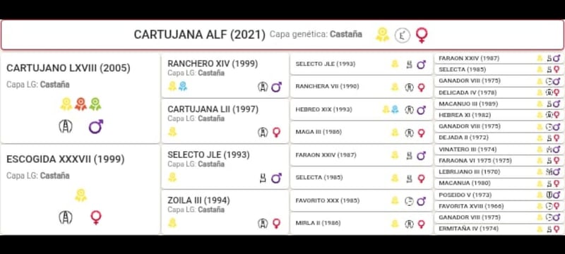 PRE foal, granddaughter of UTRERANO VII (elite) on the father's side and of CARTUJANO LXVIII (Sicab champion) on the mother's side (MFE). Very good character, excellent conformation and movement. For more information, please contact.