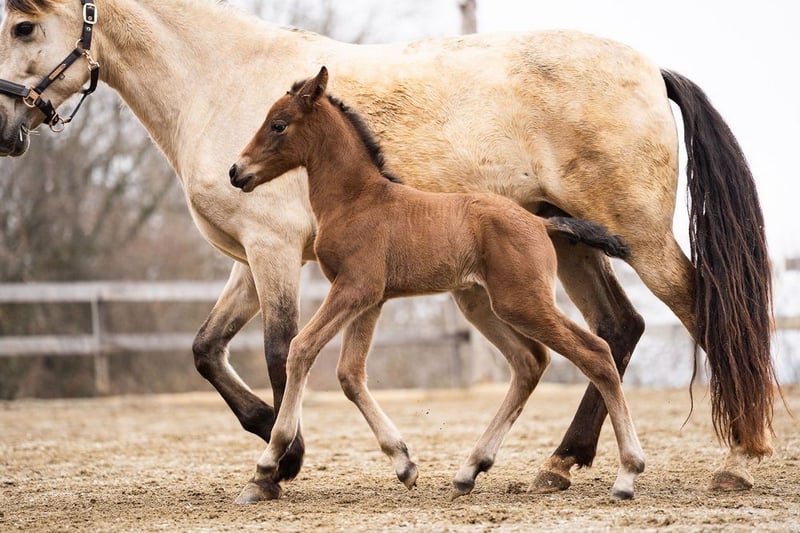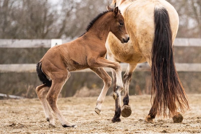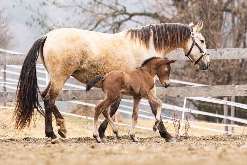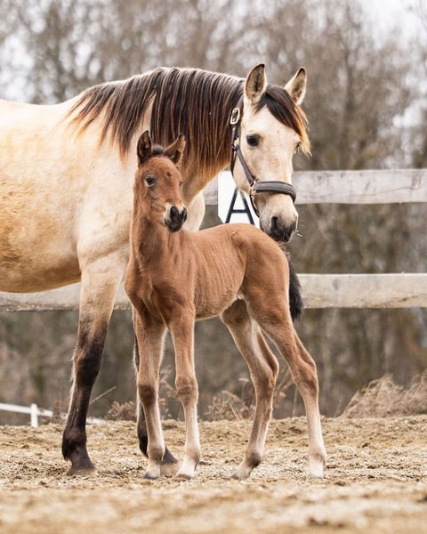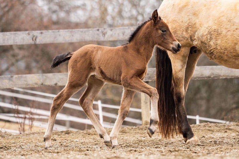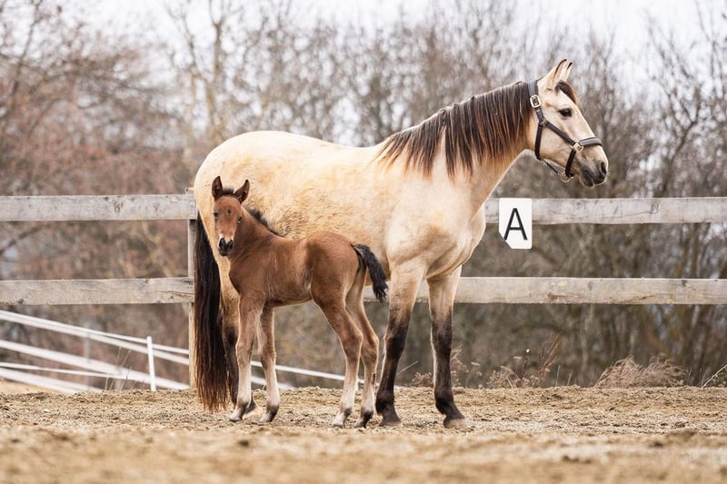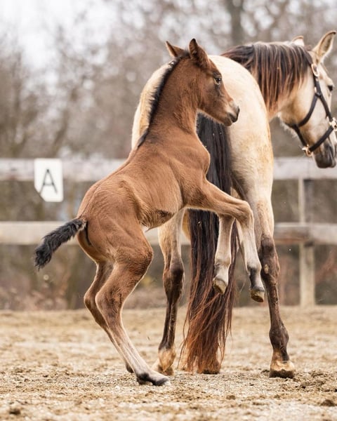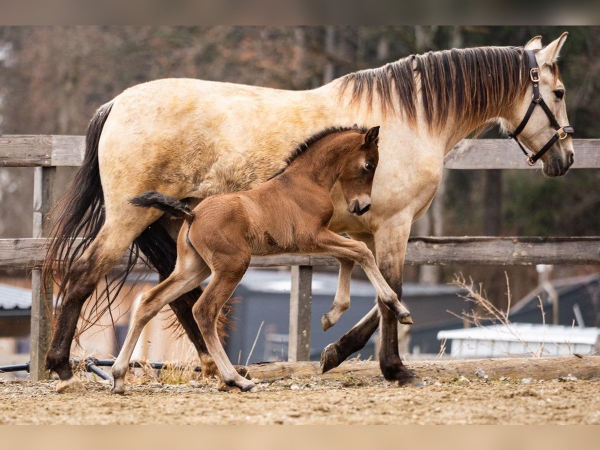 lieber Charakter, verschmust, verspielt, roh, steht mit ihrer Mutter und anderen Stuten und Fohlen draußen, barock, Braun mit Pearl-Gen, STANDORT ÖSTERREICH, Abstammung: Paco Marti, Hnos Camacho Benitez, Yeguada la Llana, Antonio Cuenca Delgado, Ururopa Gaucho III ist qualifiziert www.elegante-andalusier.com