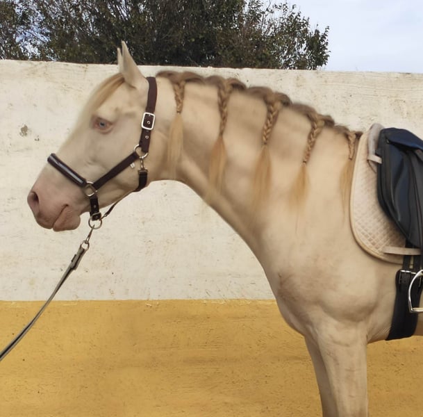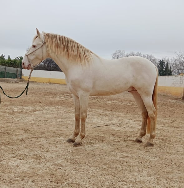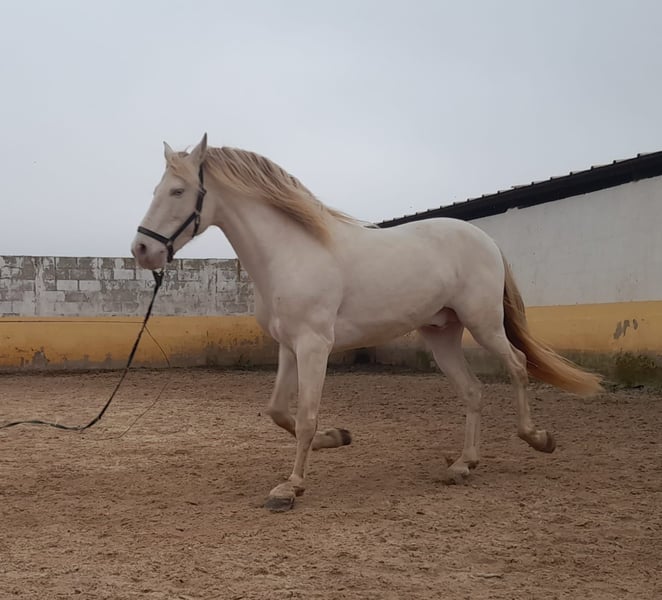 Etalon PRE pearlino de 9 ans inscrit au Stud Book de l'ANCCE avec licence de base de reproducteur et déjà plus de 30 descendants. Analyses génétiques des couleurs disponibles sur demande. Monté dans les bases. Bon mouvement. Il a une cataracte à l'oeil droit. Le cheval se trouve en Espagne.
