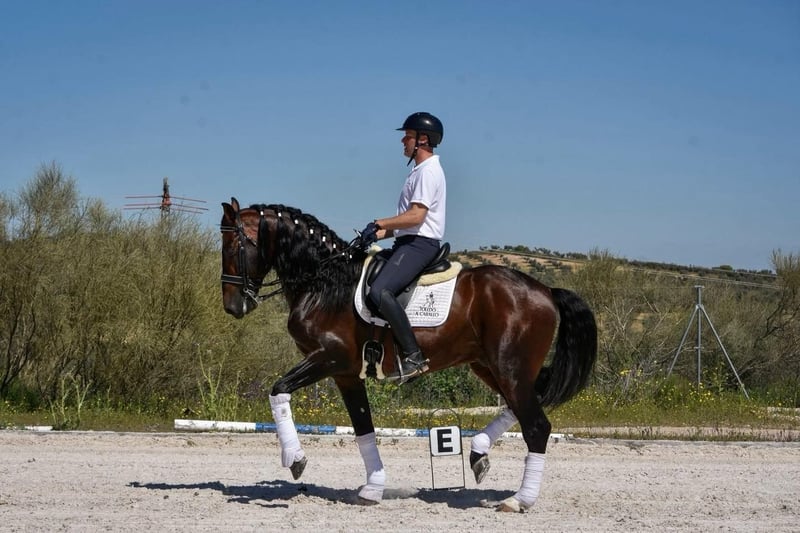 Schoolmaster Piro Free PRE Stallion, born in 2016, currently performing nearly all Grand Prix exercises. He boasts the finest bloodlines from Yeguada Militar, being a son of CERRO (a licensed and recommended stallion), combined with Escalera bloodlines from the dam. His height is 168 cm, with a beautiful sport conformation. He has three elegant gaits: a large, expressive walk and canter, and a suspended, expressive trot. His temperament is easygoing, sensitive, and comfortable, making him very rider-friendly. He has been trained in PSG-level movements, including piaffe and passage, and is working on 15 x 1 tempi changes with a simple snaffle or double reins. Currently, he can perform nine tempi changes, making him GP-ready. He moves softly, light, elastic, and flexible, maintaining a soft and steady contact. He is easy to move forward and to collect, demonstrating a smooth, balanced ride. Gentle and respectful with people and other horses, he is a sweet-hearted horse with excellent character—free of spookiness, stallion manners, and fully trustworthy. He is accustomed to working alone or with other horses and mares in the arena, as well as riding in the countryside, both alone and with company. Suitable for an amateur rider (the girl in the pictures) or a professional. A top opportunity to compete at PSG level and soon at Grand Prix. Located in Spain 🇪🇸 More information via WhatsApp: +49 176 9973 34 More horses: https://t.me/toplusitanos Jasmin from Top Lusitanos 🤗
