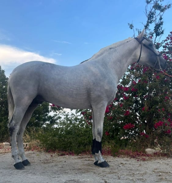 Tarugo is a classic PRE horse, embodying the traditional appearance that has characterized the Pure Spanish Horse breed since its origins. A medium-sized, baroque-type horse, he is particularly notable for his gentle temperament. We could describe him as an accomplished and artistic performer, effortlessly executing series of piaffe changes and performing excellent haute école, as well as lateral movements and pirouettes. Tarugo is a stallion, yet he is very calm and relaxed. This magnificent equine is at an ideal age for a rider of any level to enjoy, from beginners to professionals seeking to deepen their training, refine their skills, and take him even further in classical dressage and haute école, as he is very close to Grand Prix level. Since he tests negative for Piro and is a virgin, he would be an excellent export prospect for countries that require these two criteria.
