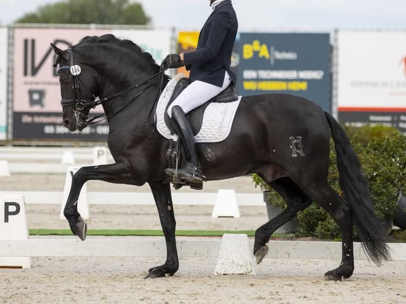 Beeindruckender PRE-Hengst, geboren 2014, mit einem Stockmaß von 1,72 m. Dieses außergewöhnliche Exemplar besticht durch Eleganz, Ausstrahlung und Funktionalität und vereint die typische Noblesse des PRE mit hervorragenden technischen Eigenschaften für die klassische Dressur. Er ist derzeit auf Sankt-Georg-Niveau ausgebildet und hat seine Qualität im Wettkampf bewiesen, wobei er Sicherheit, Gleichgewicht und Ausdrucksstärke in den anspruchsvollsten Lektionen zeigt. Seine Bewegungen sind groß, elastisch und gut durchlässig, mit einem bergauf gesprungenen Galopp und einem taktvollen Trab – ideal für Reiter, die sich in höhere Klassen entwickeln oder mit Zuversicht an Wettbewerben teilnehmen möchten. Neben seinen sportlichen Leistungen ist er als Deckhengst anerkannt und vererbt Größe, Schönheit und Arbeitswillen. Sein Charakter ist ausgeglichen und umgänglich, was ihn sowohl im Stall als auch unter dem Sattel sehr angenehm macht. Er ist piroplasmosefrei, was den Export erleichtert. Der Hengst befindet sich in Belgien und kann von ernsthaften internationalen Käufern besichtigt und ausprobiert werden. Eine hervorragende Gelegenheit für Züchter, die einen bewährten Qualitäts-Hengst suchen, oder für Reiter, die ein erfahrenes, leistungsstarkes Dressurpferd mit Zukunftsperspektive suchen. Dieser PRE verkörpert die Essenz des modernen spanischen Pferdes: Funktionalität, Noblesse und Schönheit in einem einzigen Exemplar.